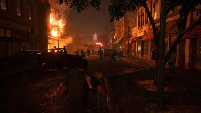 The Last of Us 게임 가이드 의 이 페이지에는 프롤로그의 연습이 포함되어 있습니다 . 게임의 처음 몇 분 동안은 Sara를 제어하게 되지만 잠시 후에 Joel이 그의 딸과 함께 도시를 벗어나려고 하는 것