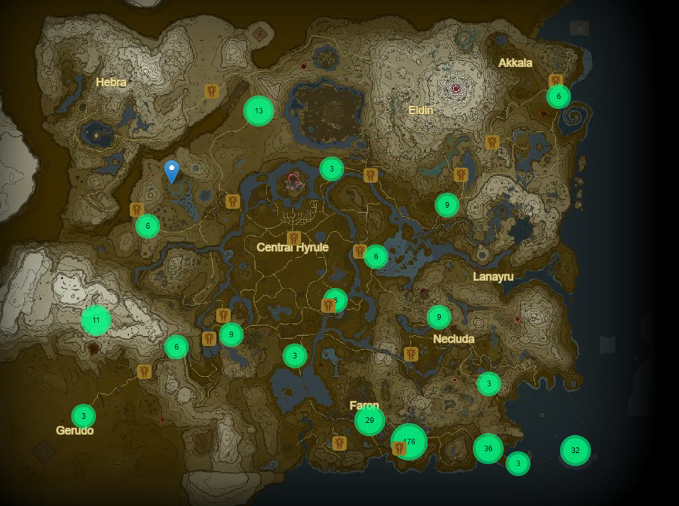 Tears of the Kingdom에는 다양한 대화형 지도 옵션이 있지만 제가 찾은 가장 깨끗하고 쉬운 지도는 여기 ZeldaDungeon.net이라는 적절한 이름 에 있습니다 . 몇 주 후 게임의 모든 항목이 매핑되었으며 이 지도를 사용하면 하늘 섬, Hyrule 및 Depths에서 원하는 모든 항목을 필터링할 수 있습니다.