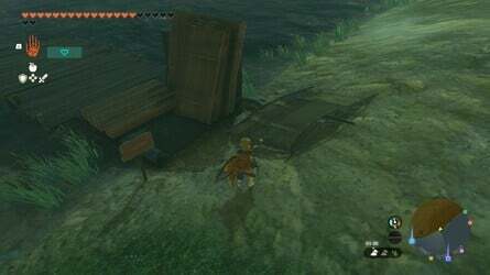 거기에서 두 가지 옵션이 있습니다. 해자에 있는 두 개의 부두 중 하나로 내려와 제공된 나무 판자와 돛을 사용하여 뗏목을 만들 수 있습니다(또는 손에 들고 있는 경우 부채, 날개 또는 기타 Zonai 장치를 사용할 수 있습니다). 다른 방법은 단순히 충분히 높은 지점에서 활공하여 해자 중앙에 있는 열린 동굴 입구로 향하는 것입니다.
