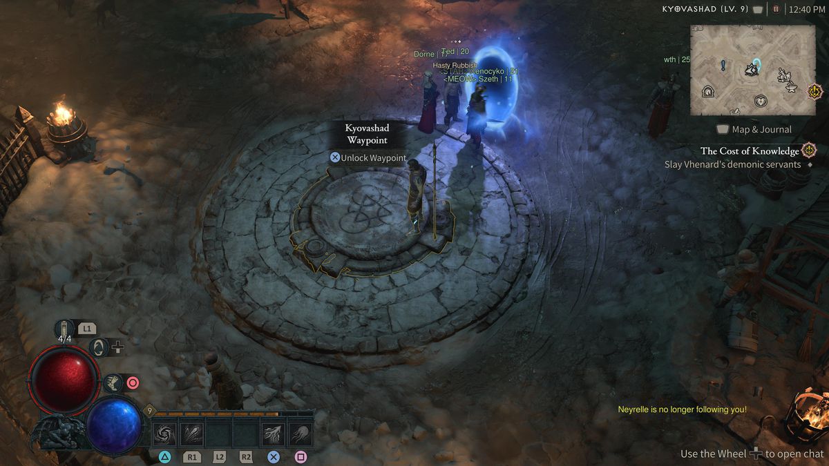 방문한 웨이포인트로 빠르게 이동할 수 있습니다. 빠른 이동 지점을 지나갈 때 자동으로 잠금 해제되는 대부분의 게임과 달리 수동으로 상호 작용해야 합니다. 프롬프트는 간단하지만(최소한 PlayStation에서는 "X"를 누름) 던전 깊숙한 곳에서 갇힌 채 차갑고 외로운 자신을 발견하지 않고 심각하게 우월한 보스에 의해 반복적으로 말살당하지 않도록 반드시 하십시오.