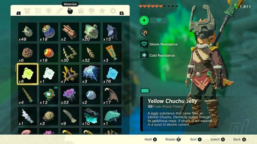 이 유용한 물건에는 몇 가지 다른 맛이 있습니다. 빨간 젤리를 던져 불 같은 효과를 내거나, 하얀 젤리를 사용하여 적을 얼리거나, 노란 젤리로 다수의 적에게 충격을 줍니다. 젤리의 속성도 변경할 수 있으므로 용도를 생각할 수 없는 파란색 재료가 있는 경우( 지역 현상 퀘스트의 Zora 섹션 에서 도움이 되지만) 불 같은 것으로 부수십시오. 그것을 바꾸는 무기!