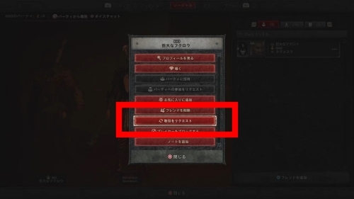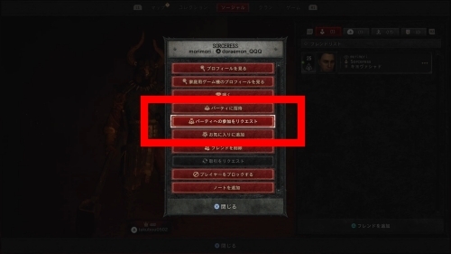 상대방의 필드에서 멀티플레이를 하고 싶다면 ' 파티 참여 요청 '을 선택하세요.