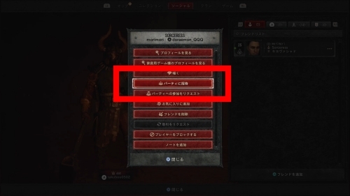 그 외에도 상대방이 파티 참가를 초대할 때 초대를 승인하면 상대방 필드에서 멀티플레이할 수 있습니다.
