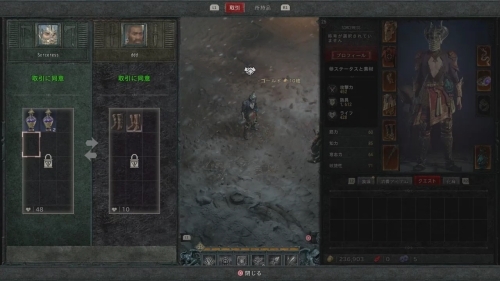 멀티플레이 중(파티를 짜고 나서), 파티 멤버와 소지의 아이템을 교환할 수 있습니다.