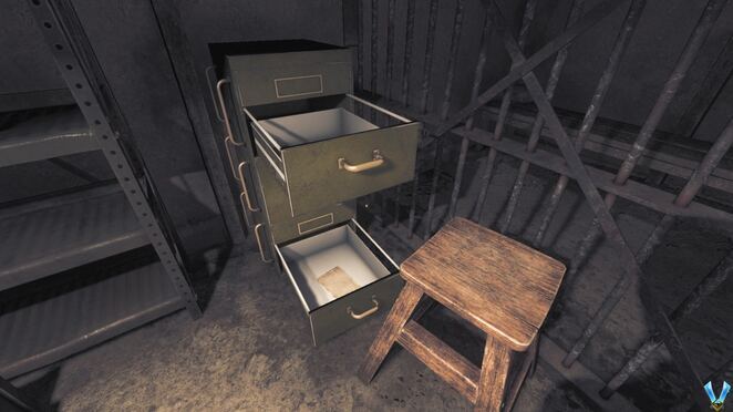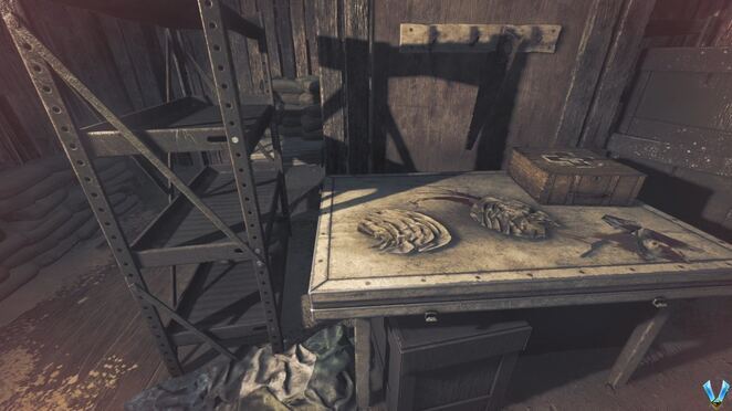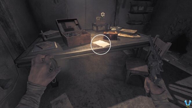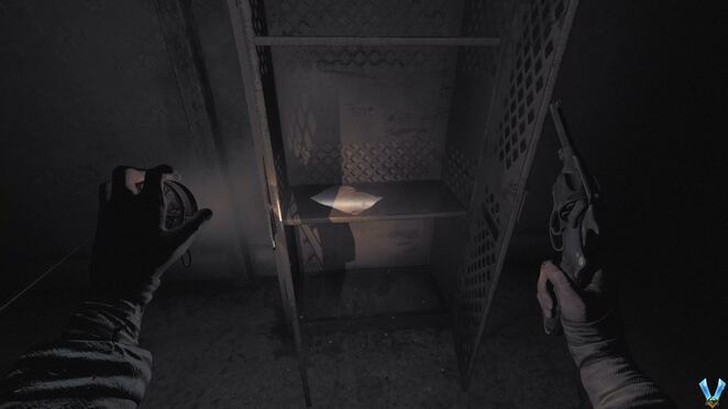 어쨌든 근처 테이블을 확인하여 NOTE - Farber에 대한 메모를 찾고 구석에 있는 금속 캐비닛의 자물쇠를 쏠 수도 있습니다. 그것을 열고 여기에서 이전에 찾지 못한 경우 인벤토리 증가를 위한 가방을 찾을 수 있으며 NOTE - Noyer's Journal - Part 2 도 찾을 수 있습니다 .
