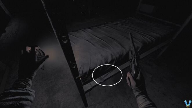 Barracks A는 여기까지입니다. 이제 우리가 찾고 있는 열쇠를 찾아야 합니다. Picart의 침대 사진을 확인하고 열쇠를 받으세요. 열쇠의 위치가 침대의 같은 쪽에 있는지는 모르겠지만 침대 옆에 있습니다.