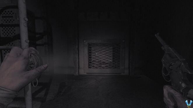 이제 총알이 3개 있습니다. 실제 벙커에 도달하고 "공식적으로" 공포 게임이 시작되면 탄약을 잃게 되므로 보관할 필요가 없습니다. 나중에 총알이 하나만 필요합니다. 어쨌든, 벙커의 다른 문을 열고 막다른 골목으로 가볼까? 여기서 우리는 물건을 잡고 던지는 것에 대해 이야기합니다. 이것은 기본적으로 촬영의 반대입니다. 로 근처의 벽돌을 집어 들고