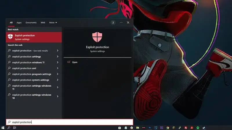 먼저 화면 왼쪽 하단에 있는 ' Windows ' 아이콘을 클릭해야 합니다 . 그런 다음 'Exploit Protection'을 검색하여 엽니다.