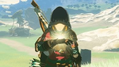 아래로 점프하고 패러글라이더를 사용하여 상형 문자의 얼굴로 내려갑니다. 한쪽 눈 쪽으로 웅덩이가 있습니다. A를 눌러 조사하면 컷신이 재생되어 Link에게 스토리 중심의 중요한 기억을 부여합니다. Zelda 공주에 대해 자세히 알아보려면 Link는 더 많은 Geoglyph를 탐색하고 더 많은 용의 눈물을 찾아야 합니다.