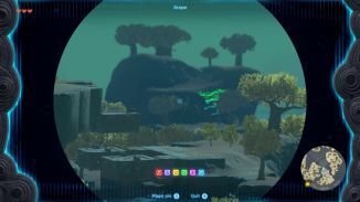 신사를 나온 후 Rauru가 다시 나타나고 일부 화면 도구 설명과 함께 Purah Plate 사용 및 지도에 핀 배치에 대한 집중 코스를 제공합니다. 이 기회를 이용하여 나머지 두 성소를 표시하십시오. 하나는 거리에서 거의 바로 앞에(남서쪽) 있고, 다른 하나는 멀리 왼쪽(남동쪽)에 높은 선반에 있습니다.