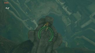 글라이더가 플랫폼에서 미끄러져 미끄러지기 시작합니다. Link를 움직여 그 방향과 움직임을 바꿀 수 있습니다. 우리는 이것을 시간의 사원을 둘러싼 큰 호수로 조종한 다음 물 속으로 뛰어들고 싶습니다.