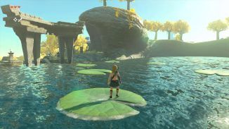 우리는 먼 쪽에 신전이 있는 큰 호수의 북쪽 기슭에 있는 자신을 발견할 것입니다. 여기에서 Blue Chuchus 및 Soldier Constructs를 제거하고 지상에서 통나무 모음과 돛을 찾으십시오. 통나무를 함께 뗏목으로 결합한 다음 그 위에 돛을 놓습니다. 이것을 물에 빠뜨리고 재빨리 승선하십시오. 이곳의 바람은 물을 건너 호수의 남쪽 기슭으로 데려다 줄 것입니다.