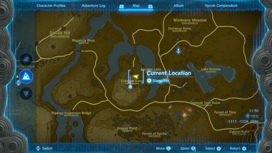 가면을 얻으려면 아래 지도에 표시된 좌표에서 Hyrule Ridge의 지도 서쪽에 위치한 Thundra Plateau 로 이동하세요 .