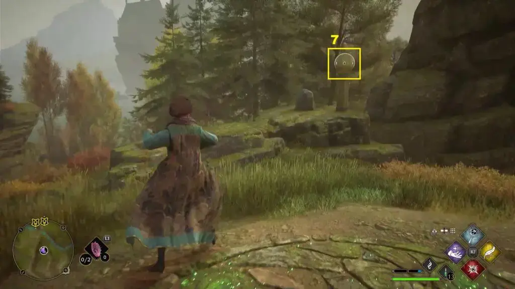 퍼즐을 풀려면 아래 두 번째 그림과 같이 공을 강 근처 땅에 있는 거대한 구멍으로 옮겨야 합니다. 먼저 Leviosa 주문을 사용하여 아래 그림과 같이 거대한 돌 공을 공중으로 들어 올립니다. 그런 다음 구멍을 향해 이동하고 Accio 주문을 사용하여 거대한 돌을 소환하십시오. 이제 Accio를 사용하여 거대한 돌을 구멍으로 안내하십시오 . 거대한 돌 공이 구멍에 떨어지면 시험이 완료됩니다.