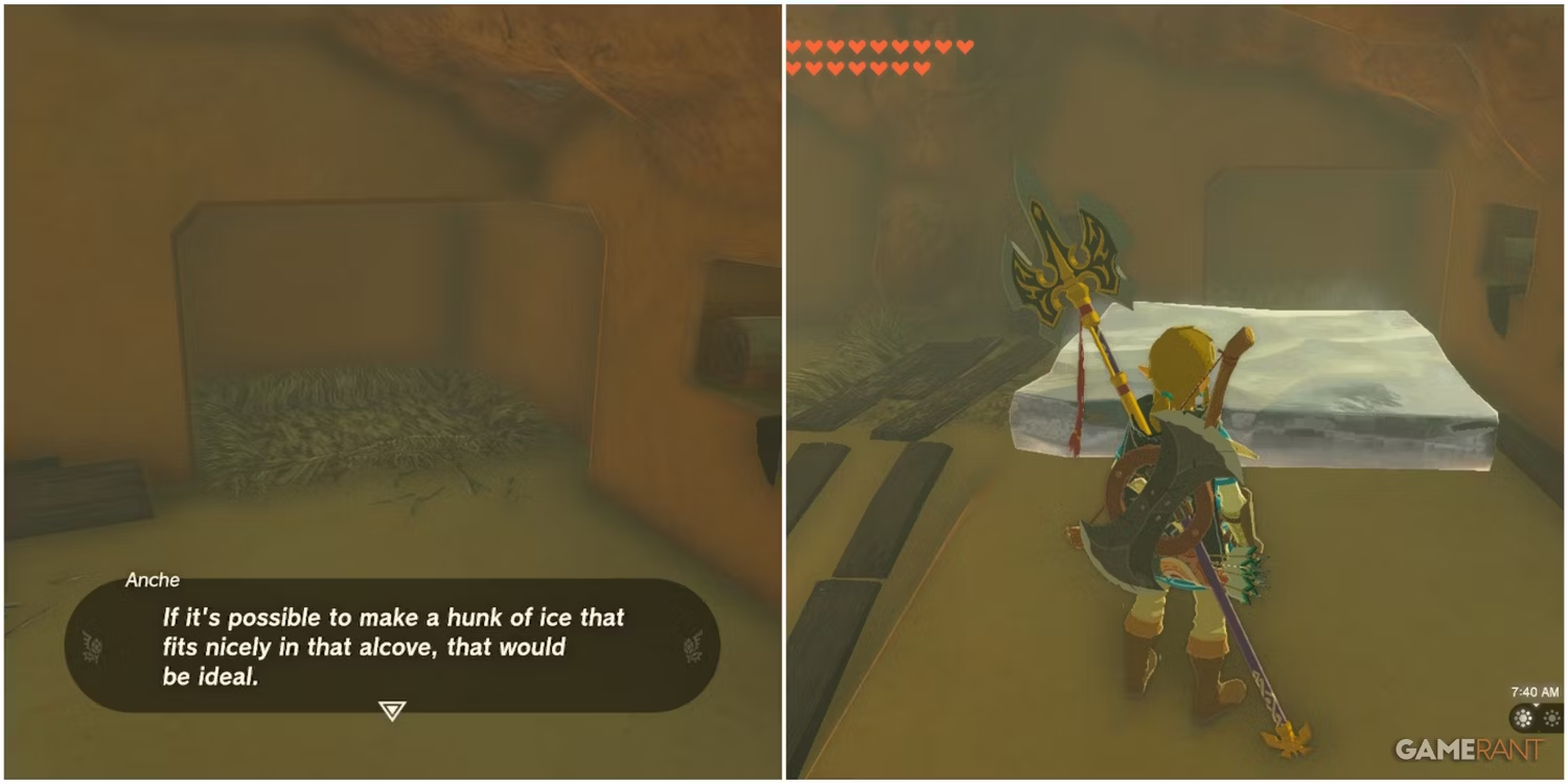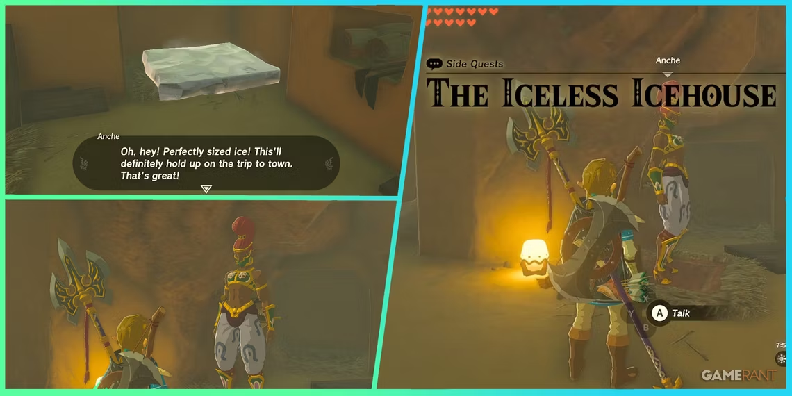 Gerudo 지역은 Tears of the Kingdom 에서 처음 방문했을 때 탐색하기 어려운 지역 중 하나입니다 . 게루도 타운으로 출발한 플레이어는 북쪽 게루도 유적에 도착할 수 있습니다. 계속 북쪽으로 가면 북부 아이스하우스를 찾을 수 있습니다. 내부에서 플레이어는 약간의 보상으로 매우 쉬운 사이드 퀘스트를 수락하고 완료할 수 있습니다.