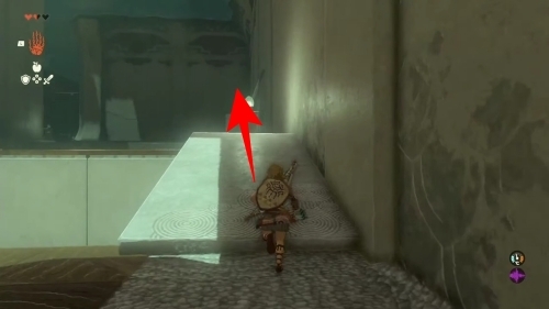 동쪽으로 이동하여 Ultrahand로 바닥에 있는 보드를 잡습니다.