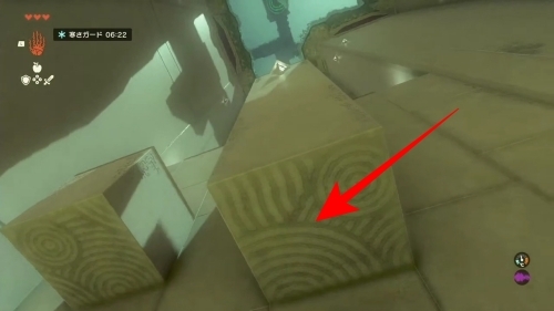 큰 바위에 붙은 무기로 바위 기둥을 부수면 보물 상자( 나무 화살 x5)를 얻을 수 있습니다 .
