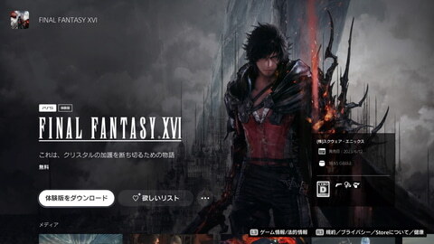 스퀘어 에닉스는 플레이 스테이션 5용 RPG '파이널 판타지 XVI'의 체험판을 6월 12일 17시경부터 배포 개시했다.