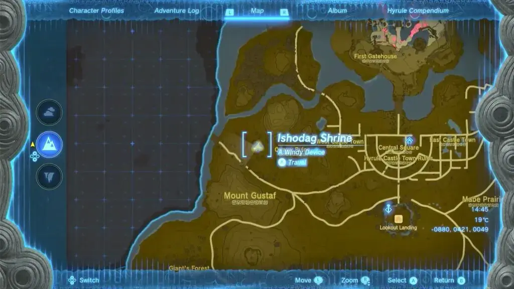 Ishodag Shrine 내의 퍼즐은 사용하는 팬을 만들고 이를 사용하여 신사를 건너기 위한 플랫폼을 만드는 것입니다. 첫 번째 방에 들어서면 왼쪽에 선풍기가 있습니다. 화격자 부분이 위를 향하도록 벽 근처로 팬을 이동하려면 울트라 핸드 기능을 사용하십시오.