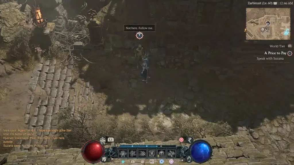 Vera와 대화 후 집 밖으로 나가서 아래 그림과 같이 집 밖에 있는 Suzana에게 말을 걸면 됩니다. 그런 다음 그녀를 따라가서 그녀가 멈추면 다시 말을 겁니다.