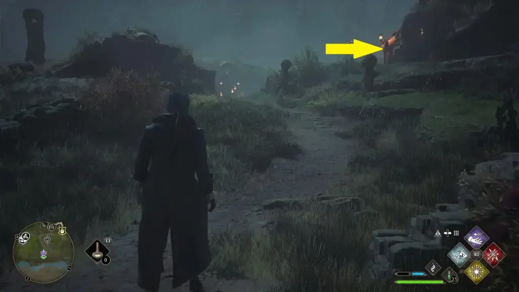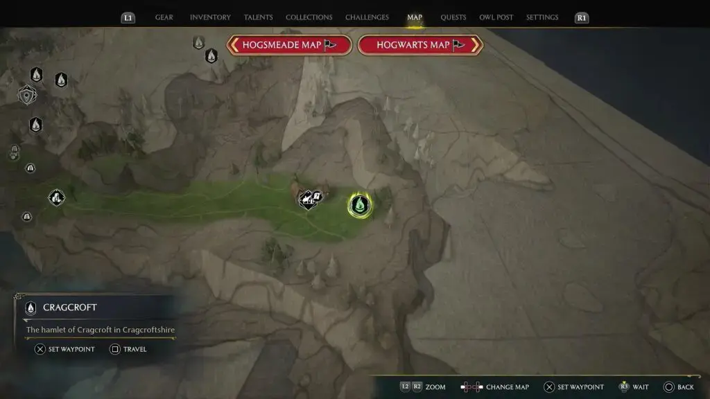 동상을 찾으려면 아래 그림과 같이 Cragcroft Floo Flame의 서쪽에 있는 집에 들어가십시오.