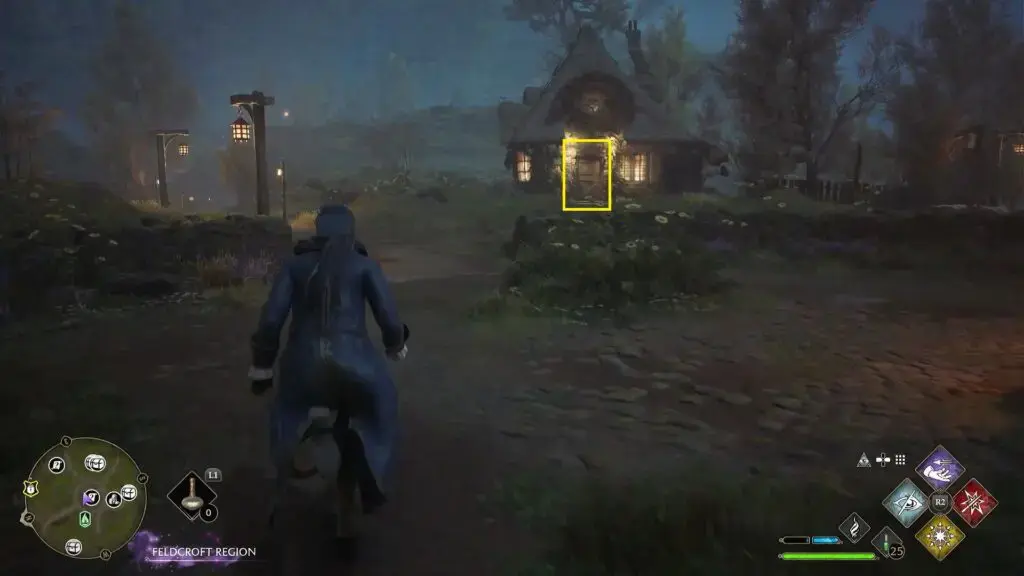 아래 그림과 같이 Feldcroft Floo Flame의 동쪽에 있는 집으로 들어가려면 레벨 1 문을 열고 안에 있는 조각상을 찾으세요.