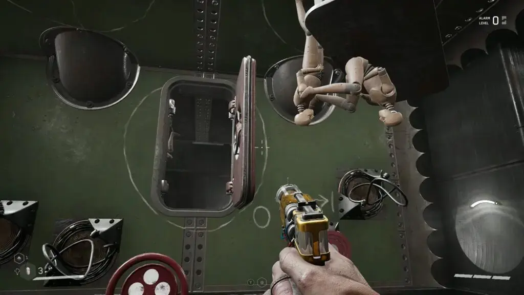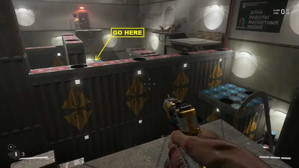 아래 그림과 같이 지붕에서 충격을 사용하여 플랫폼을 내리고 선반을 사용하여 플랫폼 #4로 점프합니다. 그런 다음 앞에 있는 플랫폼을 밟으십시오. 다시 충격을 사용하여 플랫폼을 위로 이동합니다. 위의 자기 플랫폼에 도달하려면 앞쪽 플랫폼을 올라가십시오. 이제 아래 두 번째 그림과 같이 자기 벽에 충격을 가하십시오. 이렇게 하면 플랫폼이 이동하고 통풍구로 이동합니다. 통풍구를 통해 기어가 은색 상자에 도달합니다. 열어서 KS-23 – 초음속 진동기 청사진을 얻으십시오.
