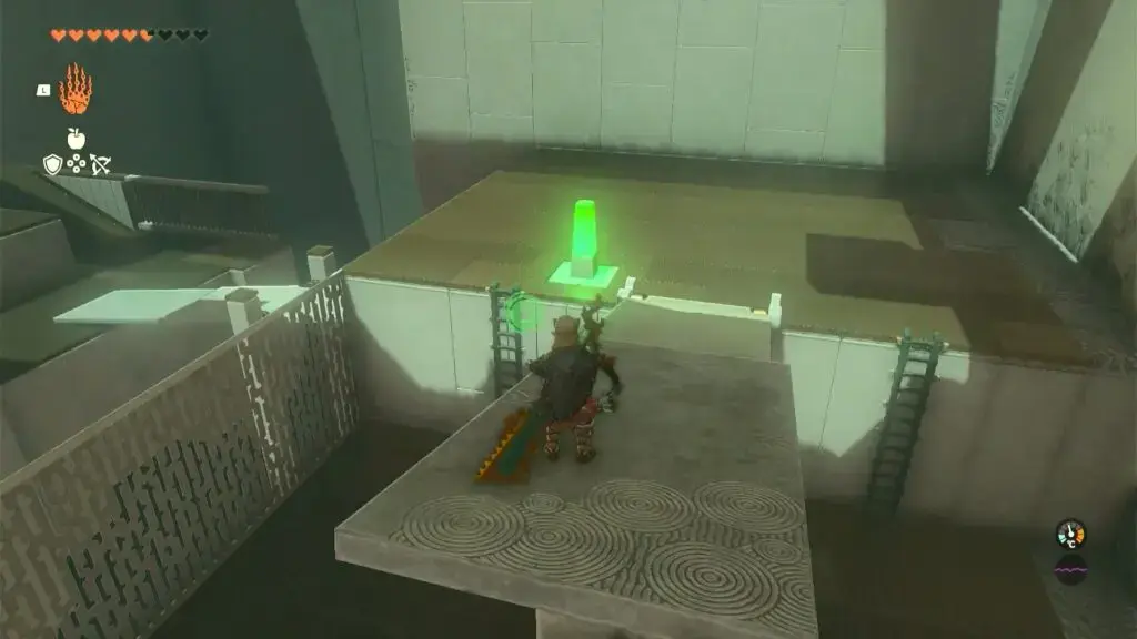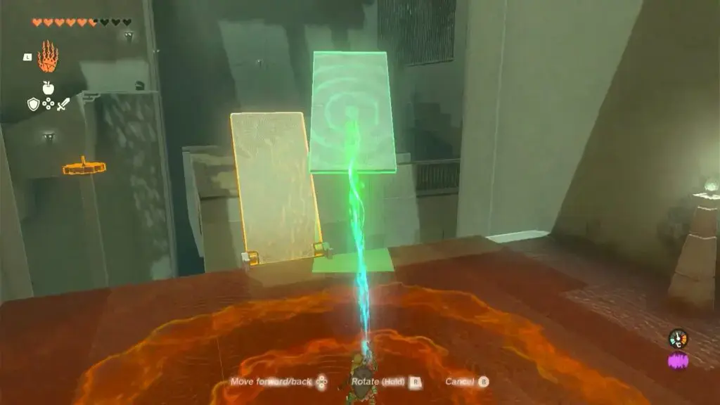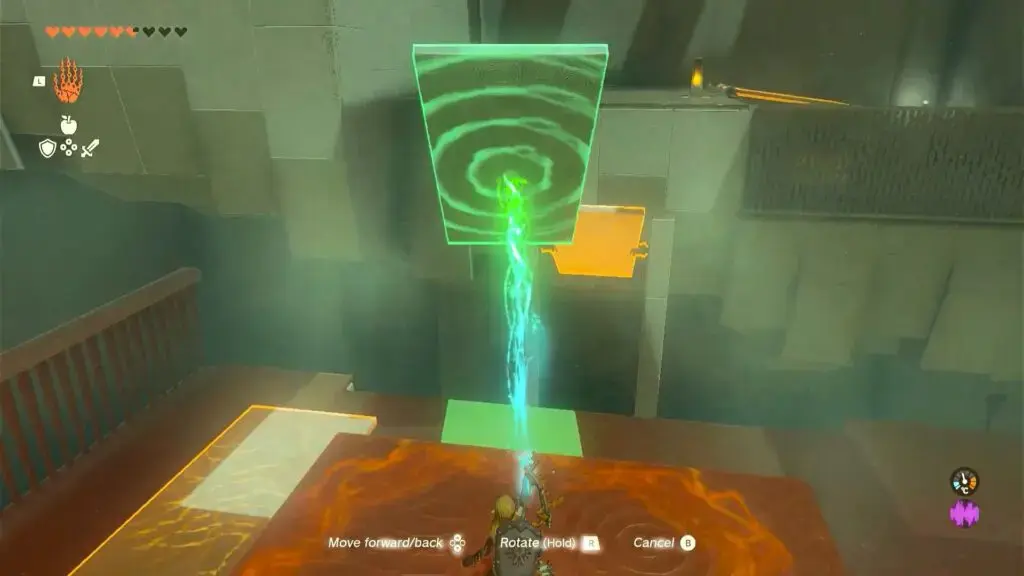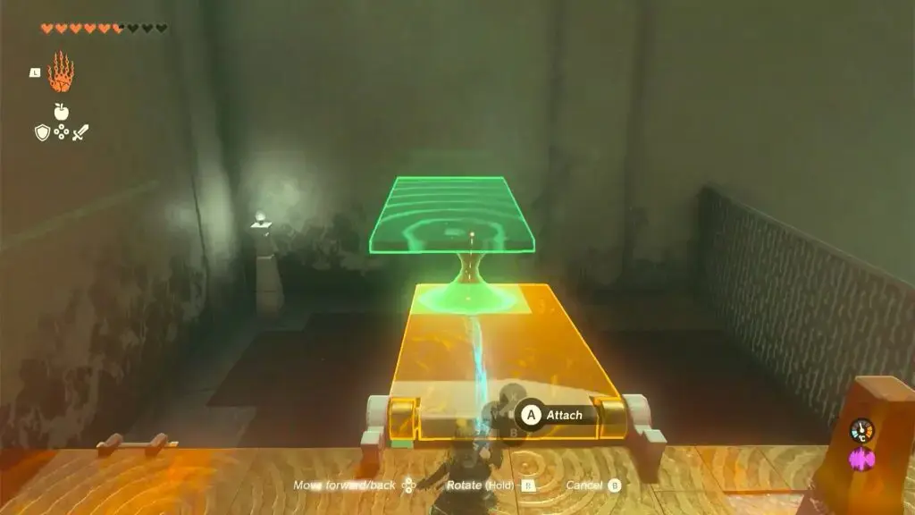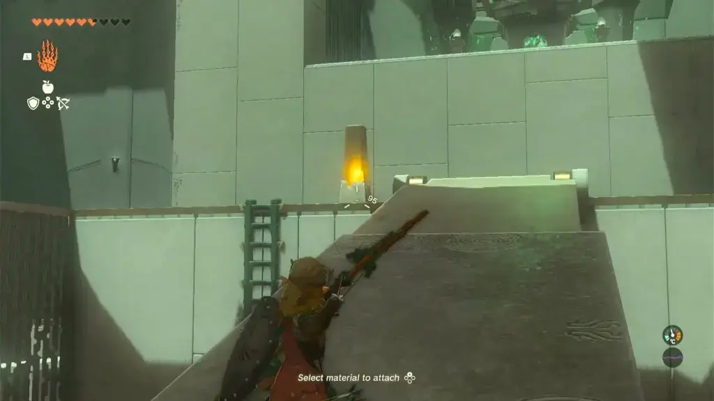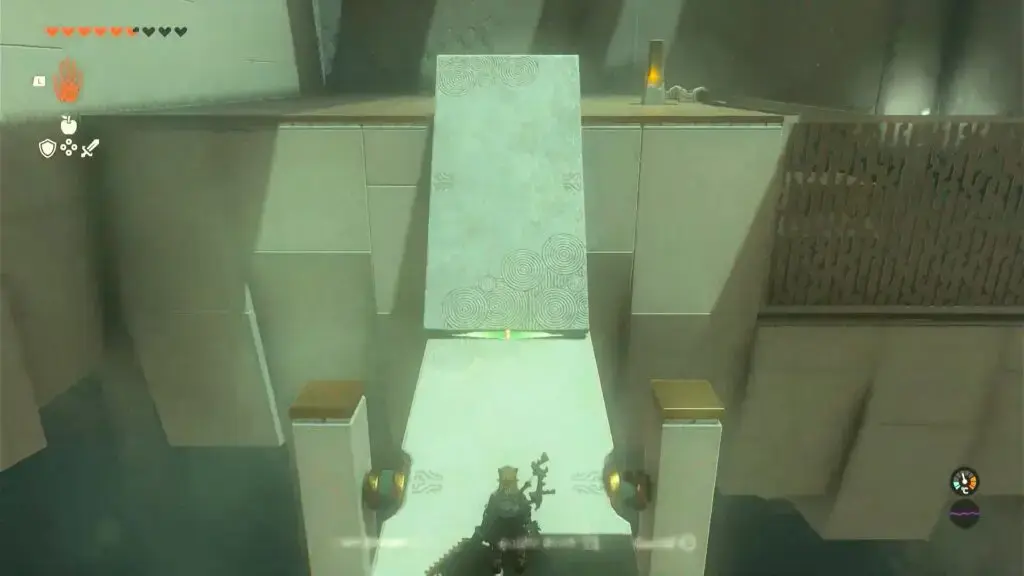 Ultrahand를 사용하여 근처에 있는 다른 석판을 집어 램프처럼 바로 앞에 놓습니다. 경사로를 따라 최종 구역으로 이동합니다.